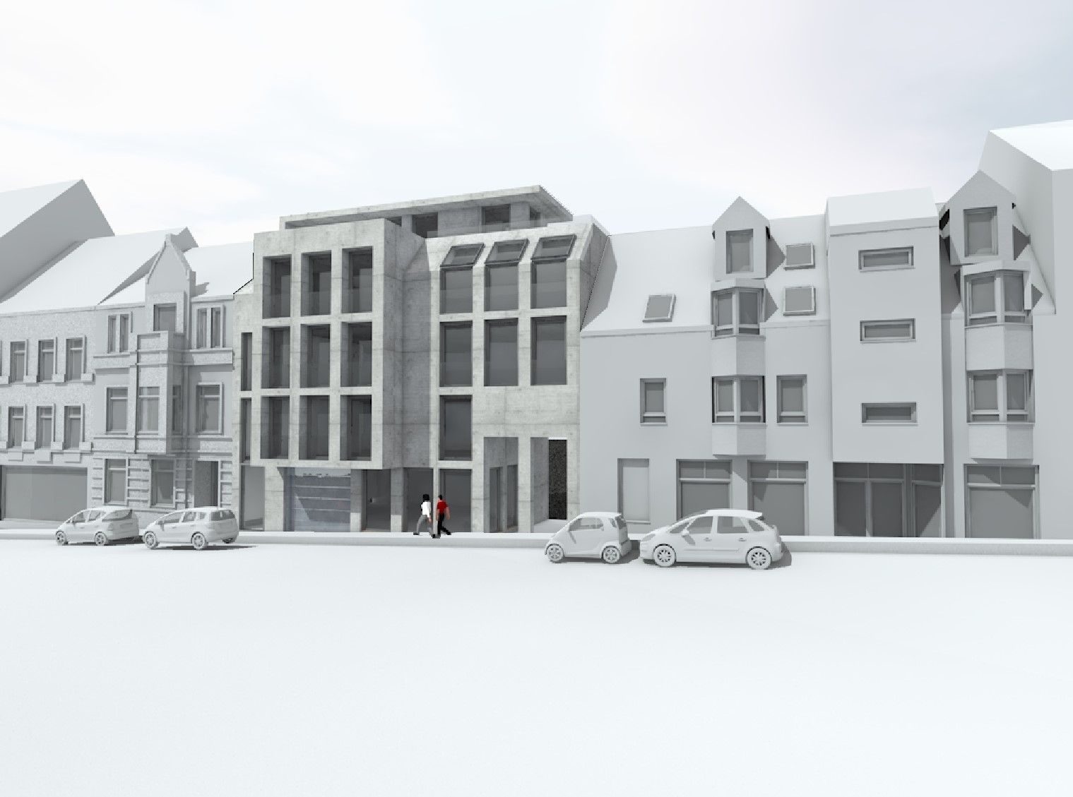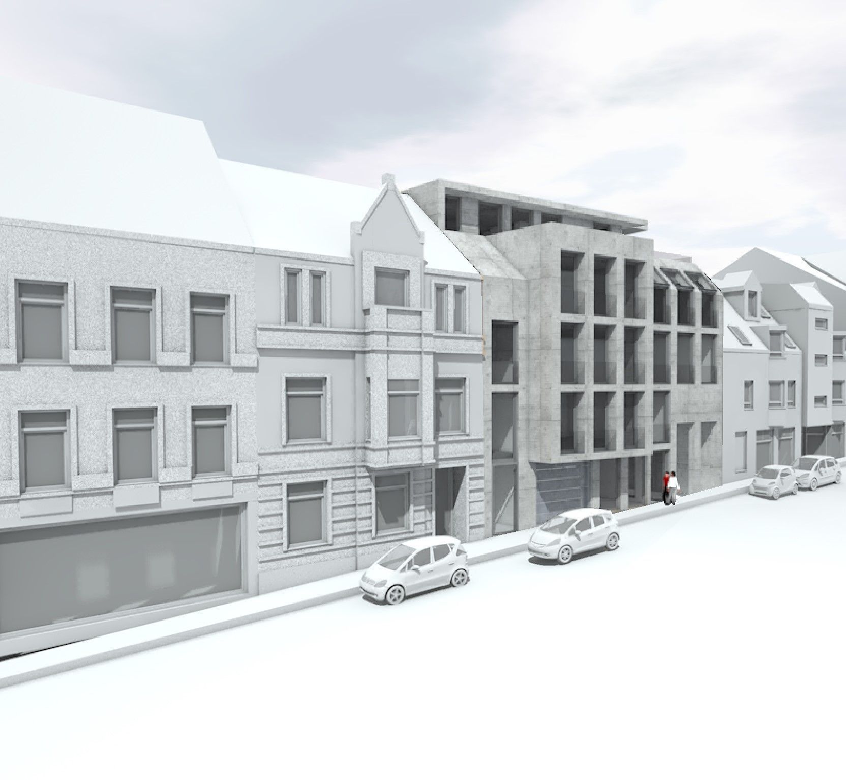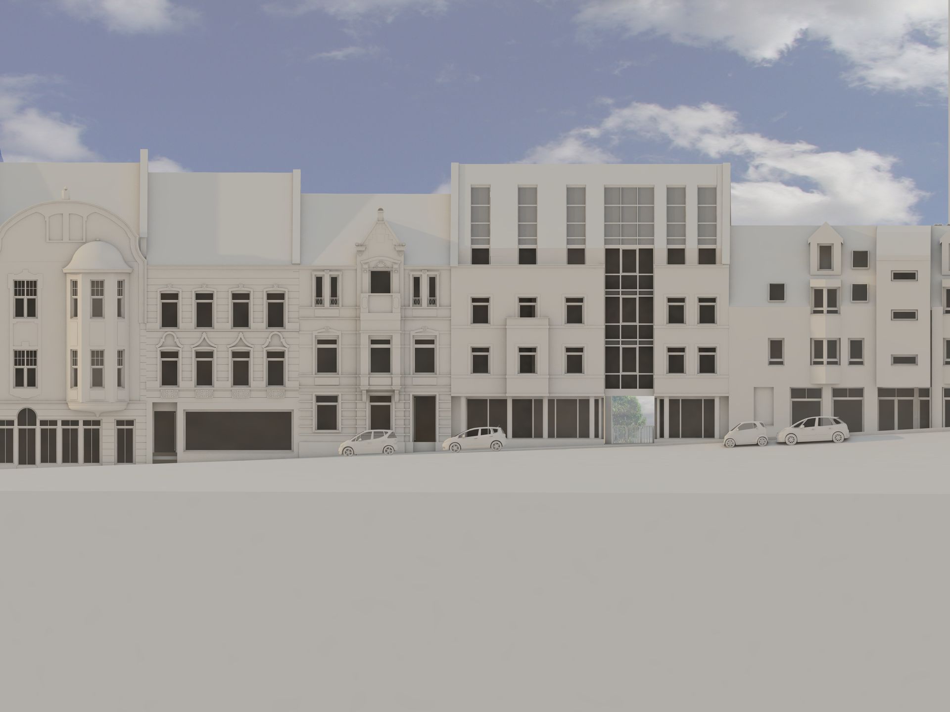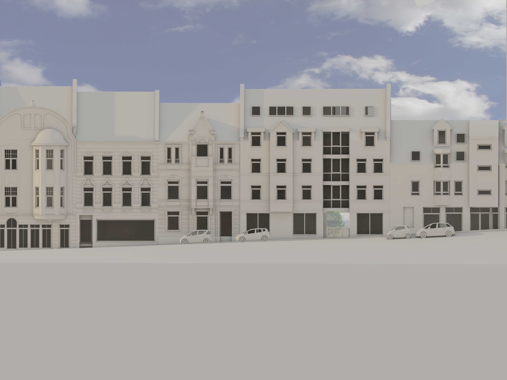 Bei dem Bauvorhaben handelt es sich um die Aufstellung eines Bebauungskonzeptes für ein viergeschossiges Wohn- und Geschäftshaus mit Satteldach, das 5 Wohneinheiten und 2 Geschäftseinheiten umfasst. Die Aufgabe bestand in der modernen Lückenbebauung, die sich harmonisch in die bestehende Bebauung einfügt.
