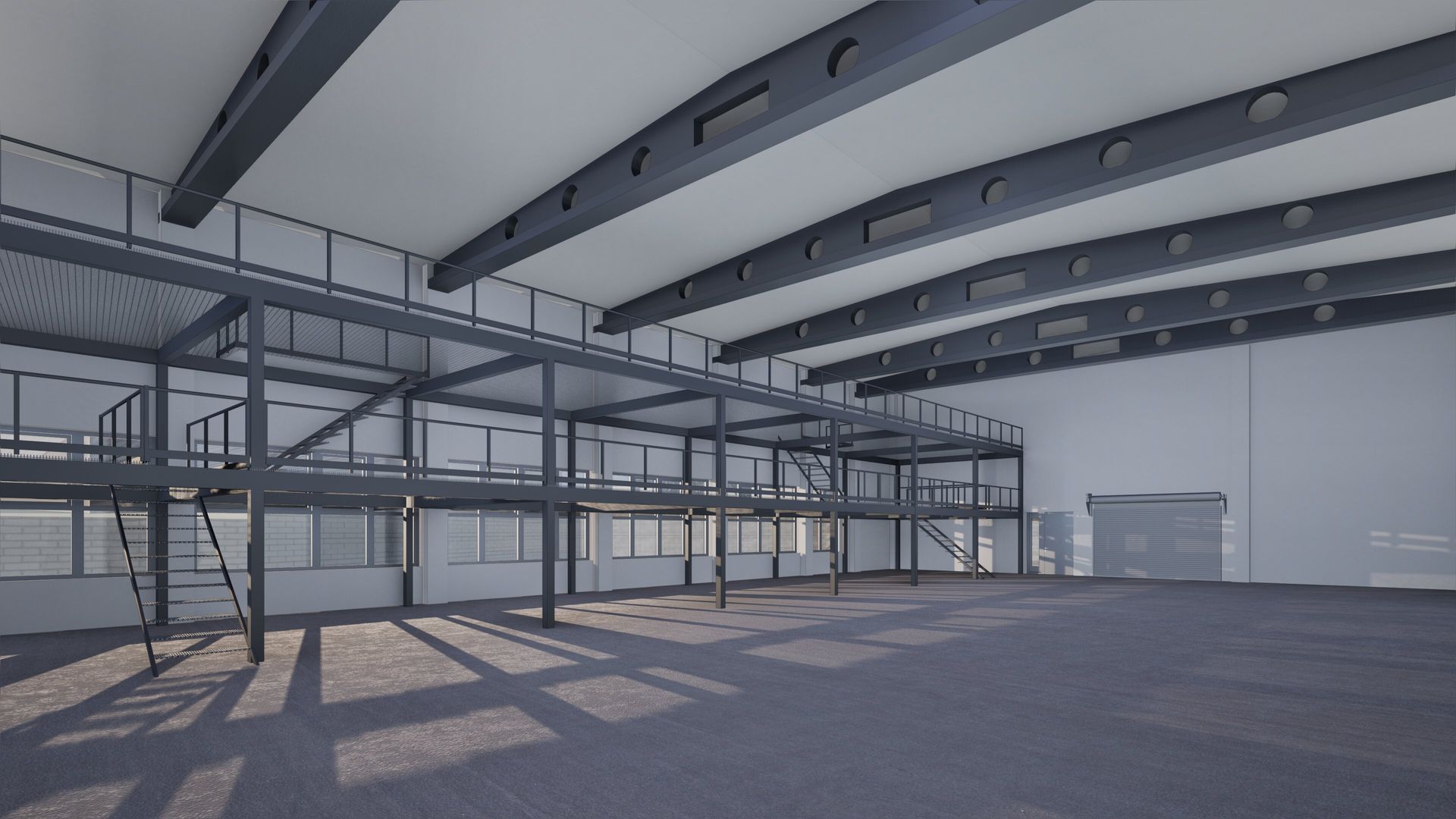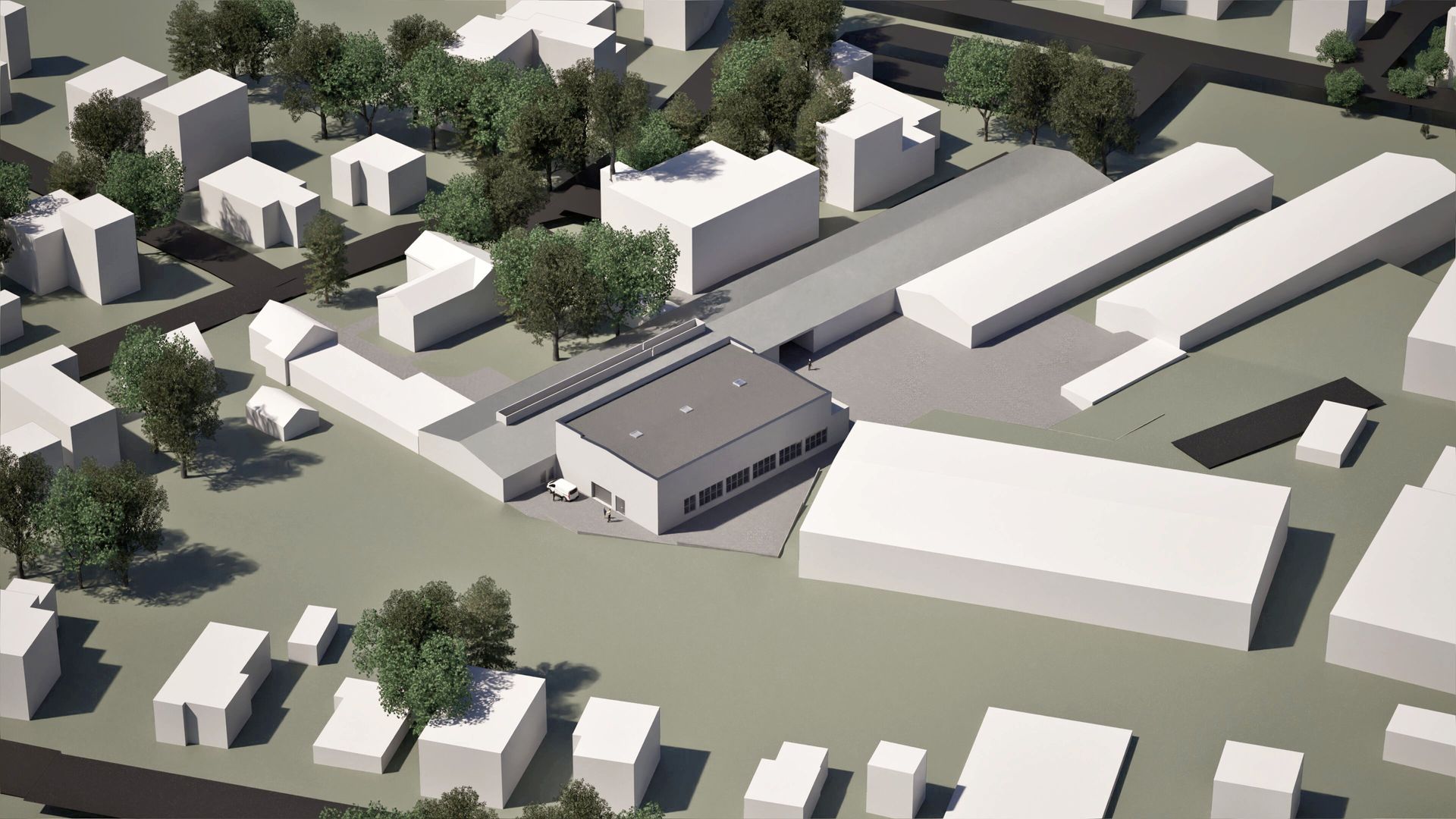 Neubau einer Lagerhalle mit Satteldach in Bergisch Gladbach als Anbau an eine bestehende Halle. Die Halle verfügt über eine Nutzfläche von ca. 435 m² und ist mit einem selbstragenden Regalsystem ausgestattet. Die hell verputzte Fassade sorgt für eine klare, funktionale Erscheinung und fügt sich harmonisch in das bestehende Gebäudeensemble ein.
