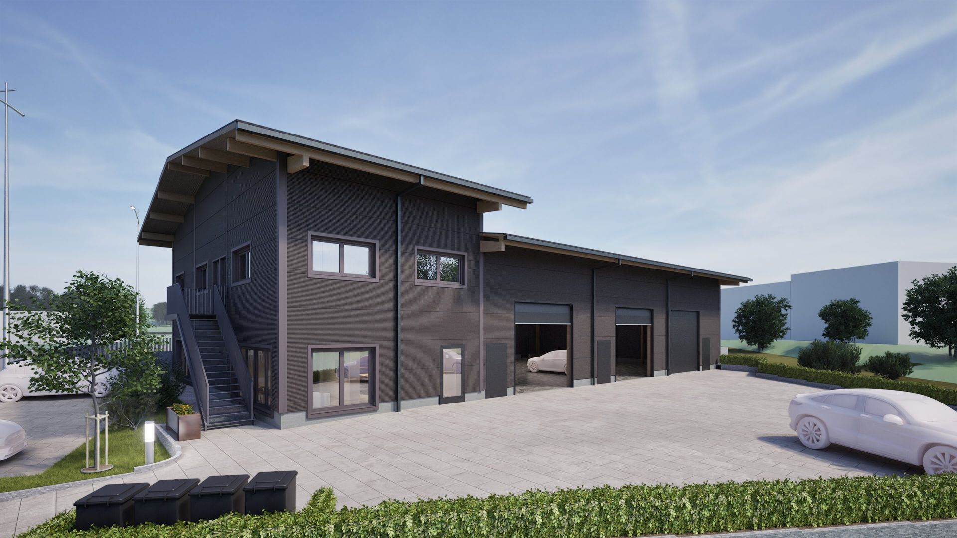 Neubau eines kombinierten Wohn- und Gewerbegebäudes in moderner, klarer Architektur. Der kompakte zweigeschossige Baukörper vereint funktionale Werkstattflächen mit einem komfortablen Wohnbereich. Die langlebige Fassadengestaltung aus dunklen Sandwichpaneelen verleiht dem Gebäude eine zeitlose und wertige Anmutung. Großzügige Tor- und Fensterflächen sorgen für helle, freundliche Arbeits- und Aufenthaltsbereiche. Das Außengelände bietet großzügige Zufahrts- und Stellflächen und unterstützt so eine flexible Nutzung.