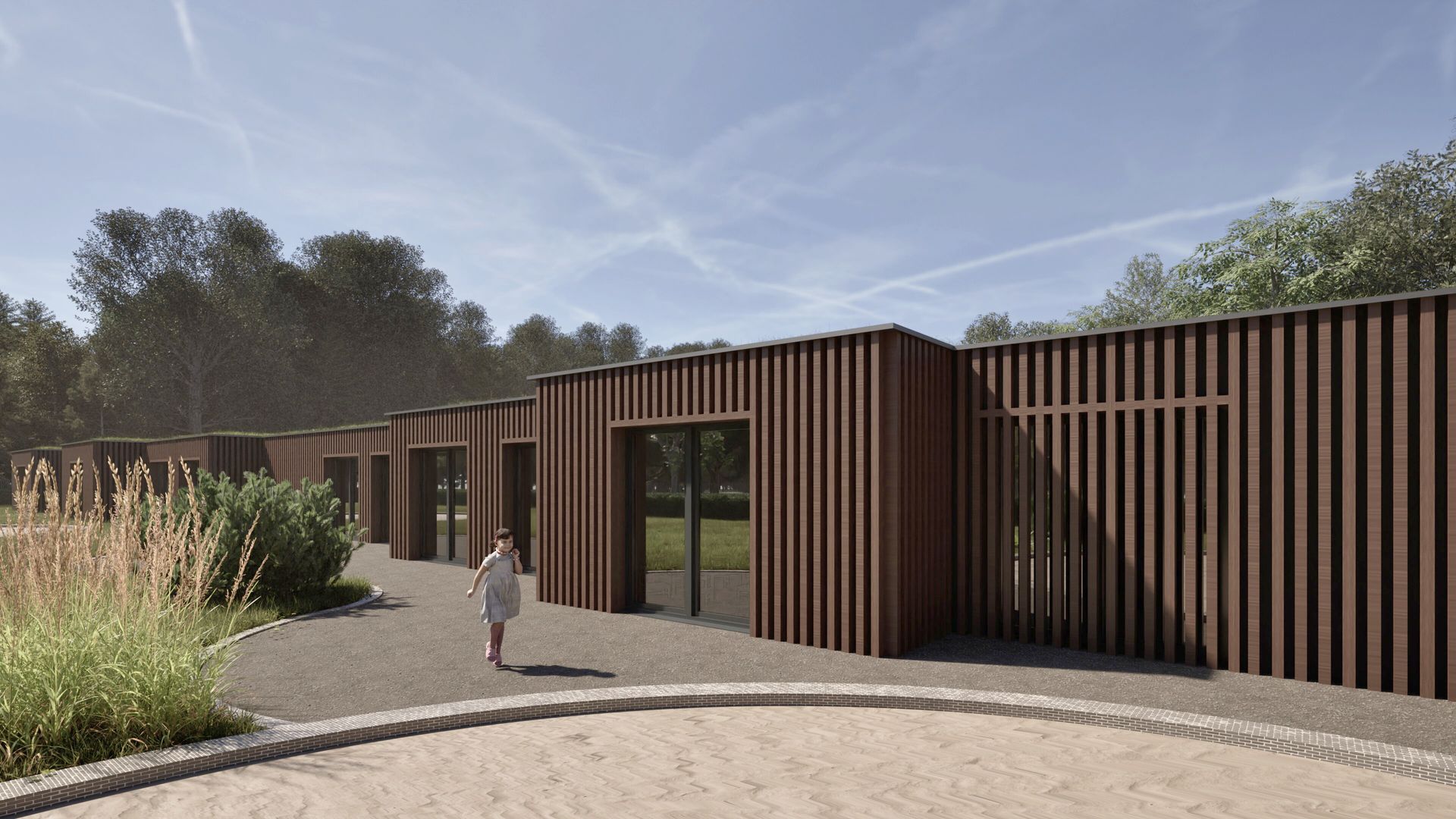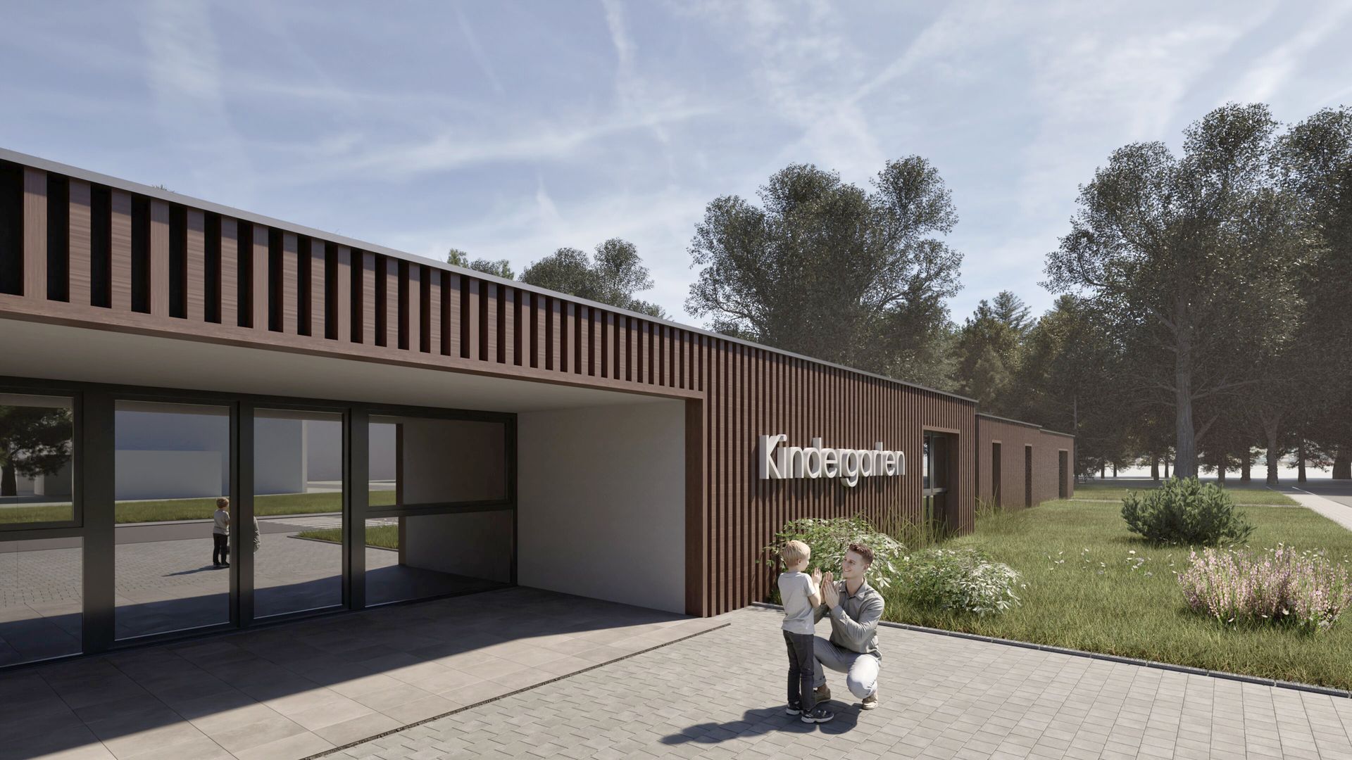 Im Rahmen des Vorhabens wird eine eingeschossige Kindertagesstätte mit vier Gruppen und ca. 900 m² Nutzfläche in Bergisch Gladbach errichtet. Der Neubau zeichnet sich durch eine klare, kindgerechte Architektur aus und bietet helle, freundliche Räume mit direktem Zugang zu einem großzügig gestalteten Außenbereich. Die Fassade erhält eine natürliche Holzlattung, die sich harmonisch in die Umgebung einfügt und eine warme, einladende Atmosphäre schafft. Der Außenbereich wird vielseitig nutzbar gestaltet und bietet vielfältige Spiel- und Bewegungsmöglichkeiten für Kinder unterschiedlichen Alters. Ziel des Projekts ist die Schaffung eines modernen, pädagogisch durchdachten Raumes für frühkindliche Bildung und Betreuung.